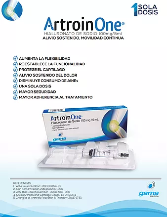 Está indicado para el tratamiento de osteoartrosis grado 1 o 2 es efectivo hasta por 12 meses con una sola dosis de 5ml. Los beneficios de alivio del dolor y recuperación de la movilidad pueden ser perceptibles desde el momento de su aplicación hasta 14 días después de la misma, el efecto de mejora aumenta gradualmente hasta llegar a su punto máximo 6 meses después de su aplicación. también es recomendado como un paliativo para tener una mejor calidad de vida, mientras se espera el reemplazo articular.